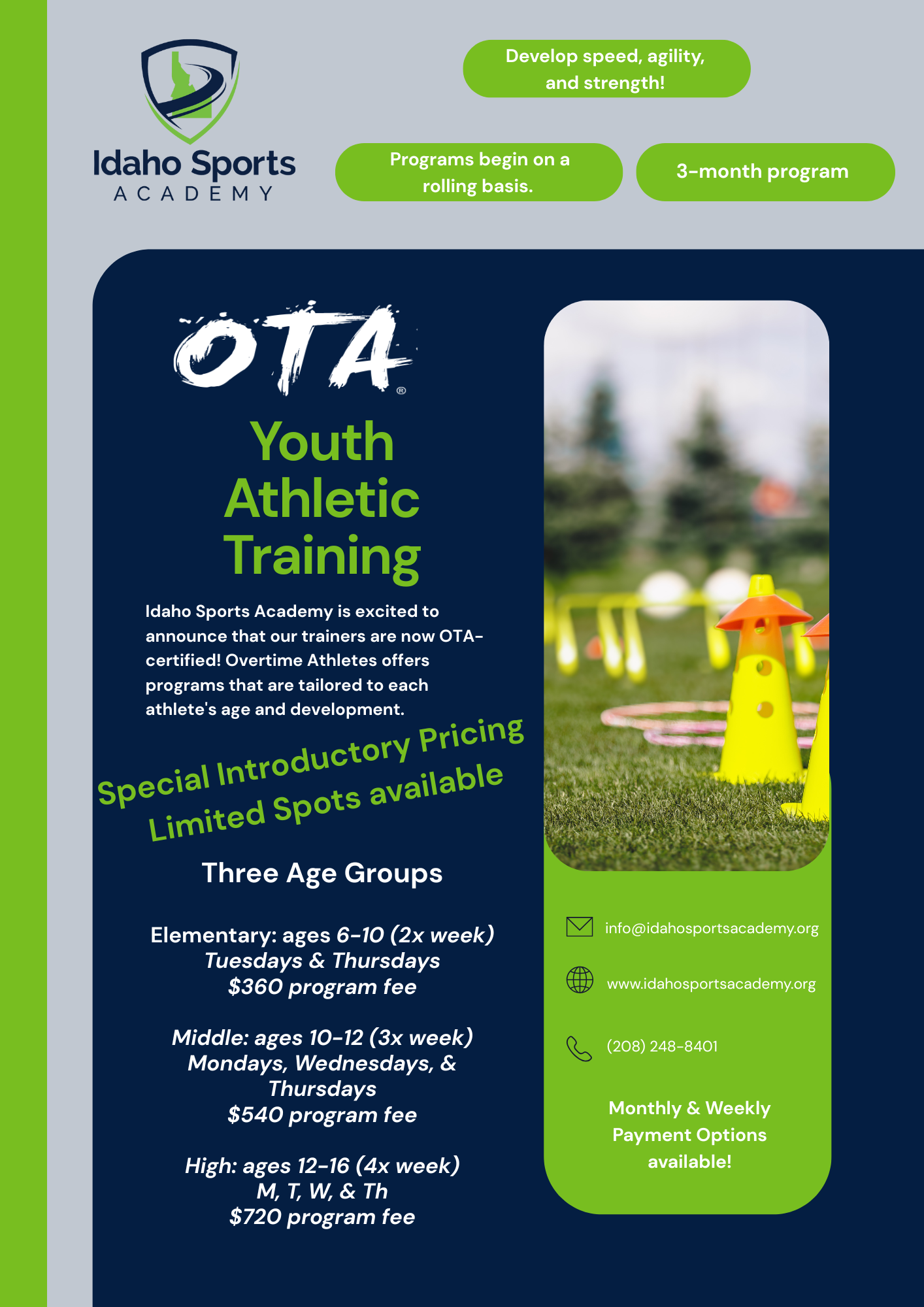 High School: Ages 12-16, runs 4x week (M, T, W, Th,)